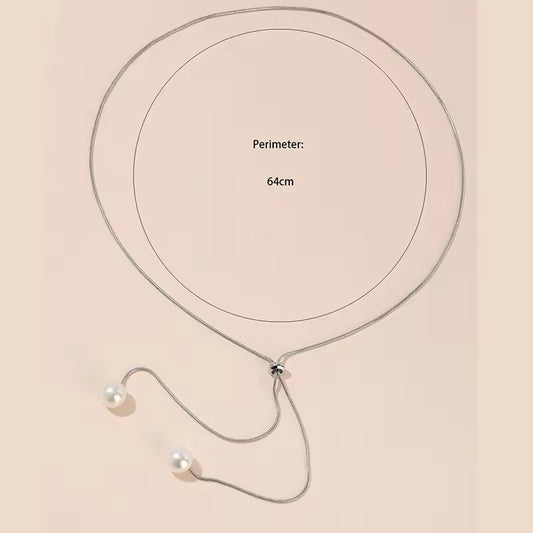 Simple Faux Pearl Pendant Adjustable Long Sweater Chain Necklace